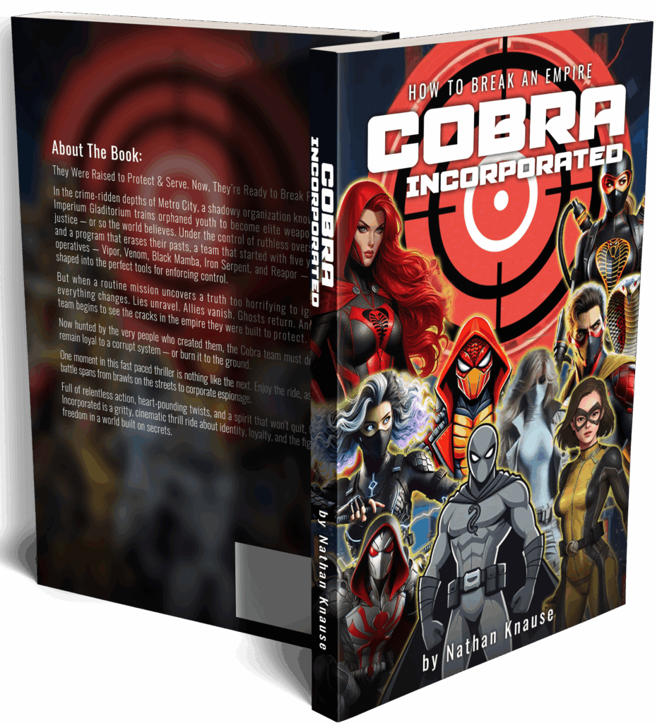 In a world where children are converted into weapons, five brave spirits break free from the chains of Imperium Gladitorium. Under the watchful eye of a secret mentor, they explore the power of knowledge and persistence. Will they rise against the cruel regime or succumb to their past? “Cobra Incorporated: How to Break an Empire” is a gripping story of survival, bravery, and the fight for identity. Unleash your potential and join the revolution—your purpose awaits!